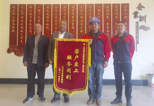 接到錦旗后,金寶山機械有限公司楊總、陳總表示,客戶的肯定既是榮譽也是一種鞭策,同時對金寶山機械以后的工作也提出了更高的要求。今后,將再接再厲,始終堅持熱情、優(yōu)質(zhì)、規(guī)范、高效服務(wù),繼續(xù)把優(yōu)質(zhì)的服務(wù)帶給全國各地的客戶,樹立金寶山機械良好的對外口碑形象。